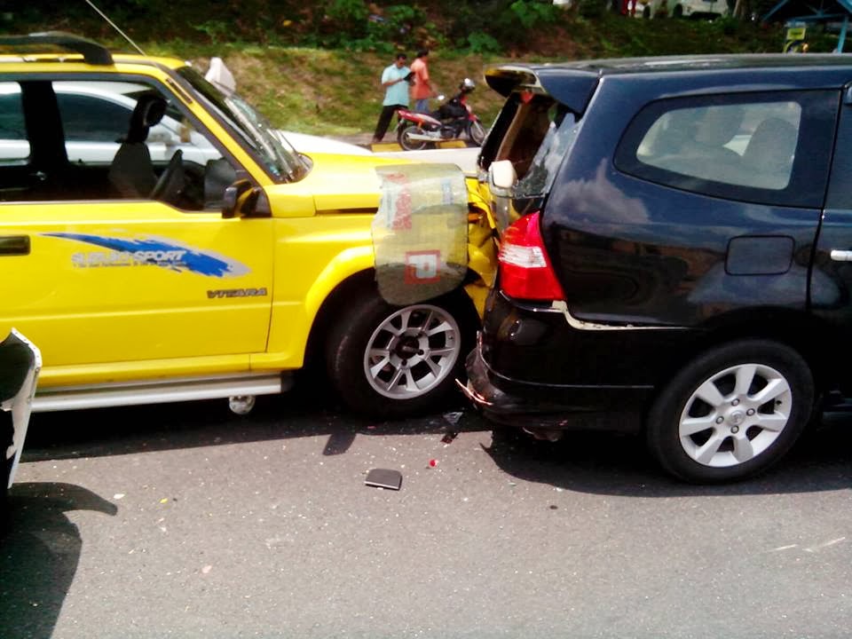 Kejadiaan berpunca gara-gara satu motor yang jatuh di mmr2, Kereta FIAT terlanggar..So kereta lain turut hentam dari belakang..Kalau nak diikutkan 4 kereta je terjadi..Kebetulan Kami semua lalu tempat kejadiaan tu yang jadi smapi 7 kereta sekaligus...aku kereta yang ketujuh langgar,myvi keenam langgar,vitara kelima,grandlivina keempat,audi ketiga,avanza keempat,depan sekali lupa dah..yang first sekali kerta fiat n motor punca semua ini berlaku...pastu blarr macam tu jew..mana budi bahasa bang...sampai skng segar diingatakn aku WAVE ko punya motor...